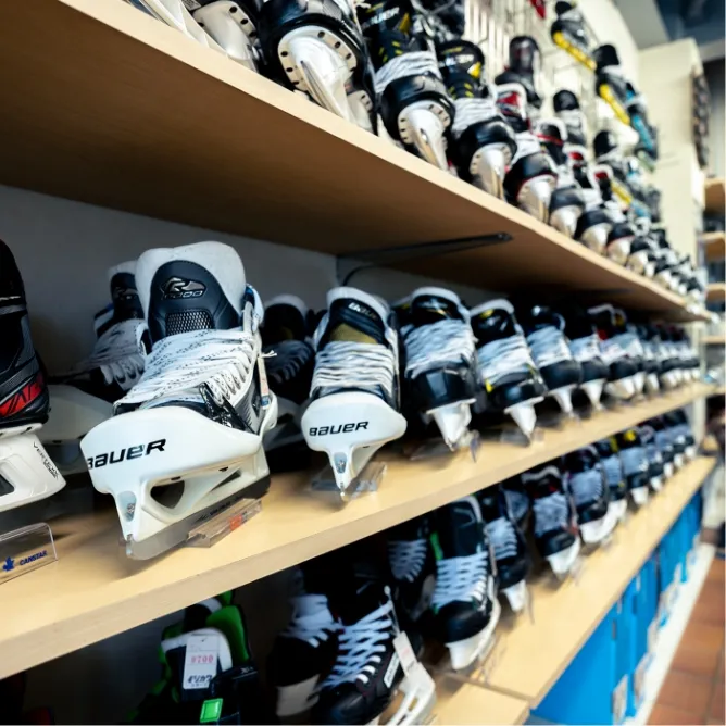 イシカワスポーツは北海道帯広市にあるアイスホッケー用品専門店です。スケート靴をはじめ、ヘルメット、ショルダーパッド、エルボーパッド、グローブ、パンツ、シンガード、利き手や年齢に応じたスティックなどの用具を数多く取り揃えています。また、防具バックや小物類も扱っております。アイスホッケーが盛んな地域のひとつでもある十勝・帯広にはアイスホッケー用品の専門店が少ない中、当店はプレイヤーに寄り添ったサービスをご提供いたします。
