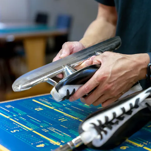 当店で修繕を行えるものは仕上げ時間を短縮し、かつ費用を抑えることも可能です。スケート靴の研磨、グローブの補修など対応しています。愛着のある用具が壊れてしまってお困りの際は、お気軽にお問い合わせください。
